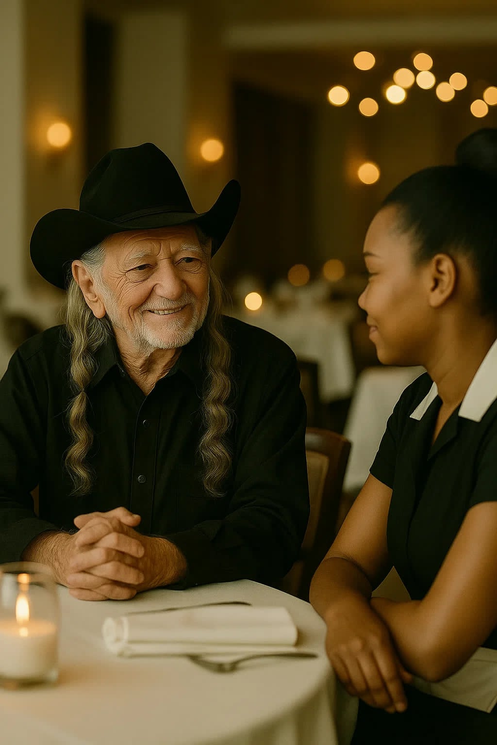 The next morning, as Keisha walked back to the diner to collect her last paycheck, something extraordinary happened. A tour bus pulled up, and out stepped Willie Nelson himself.