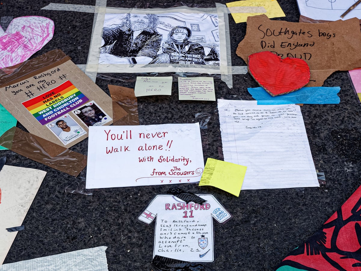 A crowdfunding page was set up to raise funds to repair the mural and thousands of people attended to leave positive messages in support of Rashford and his team-mates, Bukayo Saka and Jadon Sancho, who were also racially abused on social media after missing penalties in the shoot-out at Wembley.
