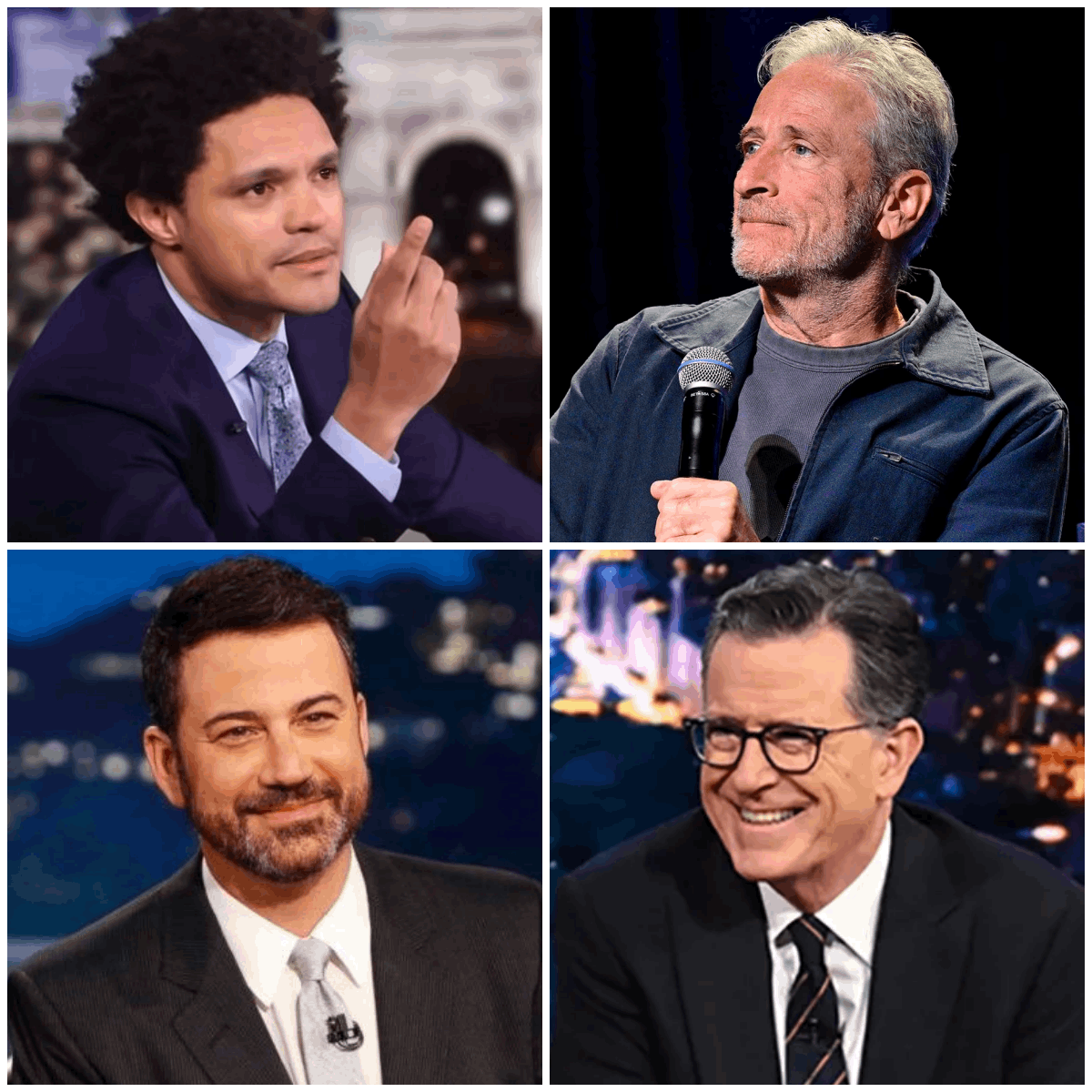 Because Stewart isn’t standing alone. Behind the curtain, he’s reportedly joined by Trevor Noah, Stephen Colbert, and Kimmel himself — a covert coalition of truth-tellers forming what one insider described as “the newsroom Hollywood doesn’t want you to see.”